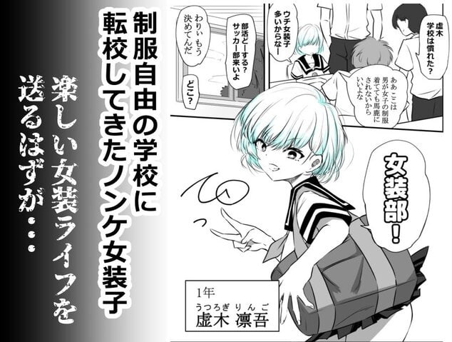 制服自由の学校に転校してきたノンケ女装子の虚木凛吾くん。